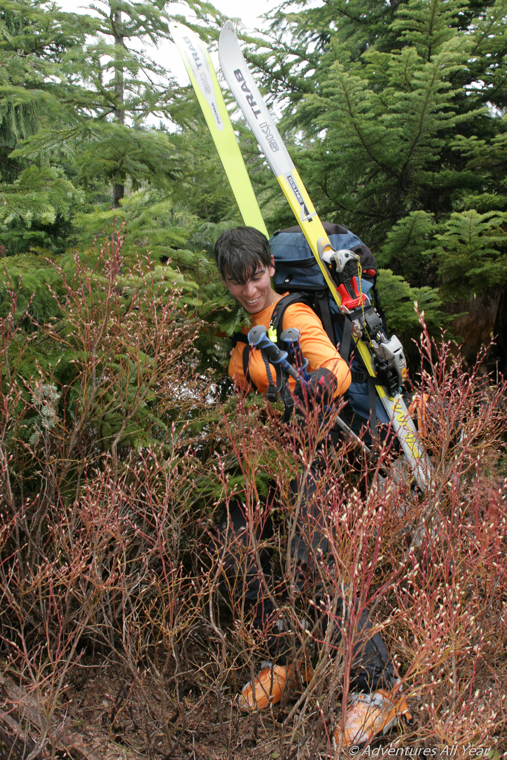 We followed W side (true right) of Porterhouse Creek down to A-1400 logging road only to find out that this spur was washed out by raging Porterhouse Cr. Forced to bush-bash we instead continued through a clearcut all the way down to Ashlu Main which we reached at 3:30 pm. All there was left is to do was to put the skis on our backpacks and WALK 20 km on Ashlu Main back to the car. Home by 1 AM.