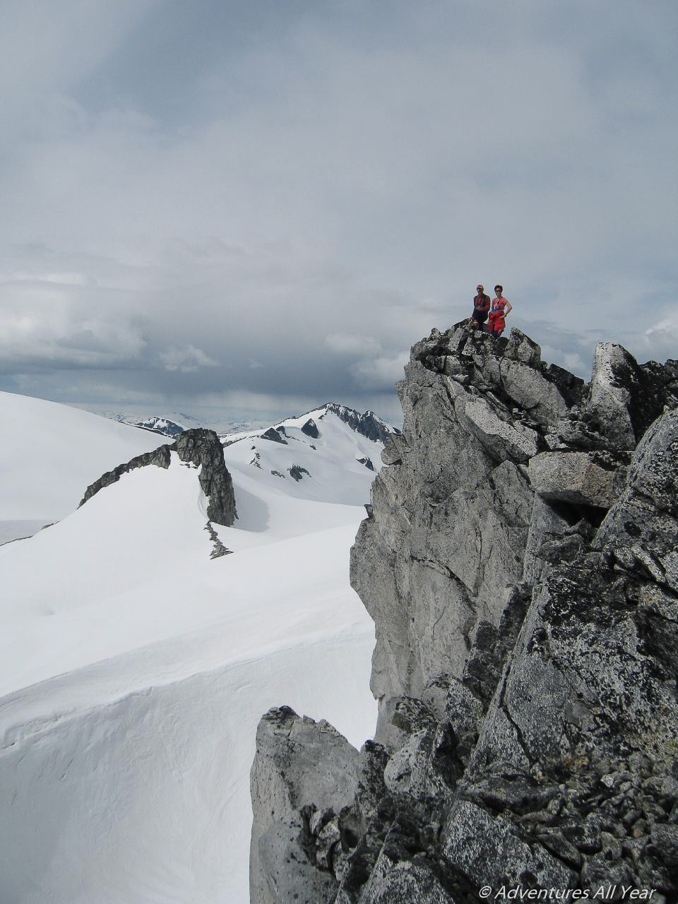 The following is a trip report from late April of 2008 when our group of four did it over 4 days. I hope it’ll provide some useful info when planning your own traverse of the Ashlu-Elaho divide. The disclaimer is that the route we took might or might not be passable today because glaciers move. The exit at Porterhouse Peak end, which we feared the most, was no problem back then and should be still good today. The 20-km walk on Ashlu Main back to the car was not fun back then and would not be good today either. Would I pay $1,400 for a heli pick up if I had that money? Maybe…but we all have our own adventures 🙂