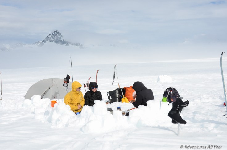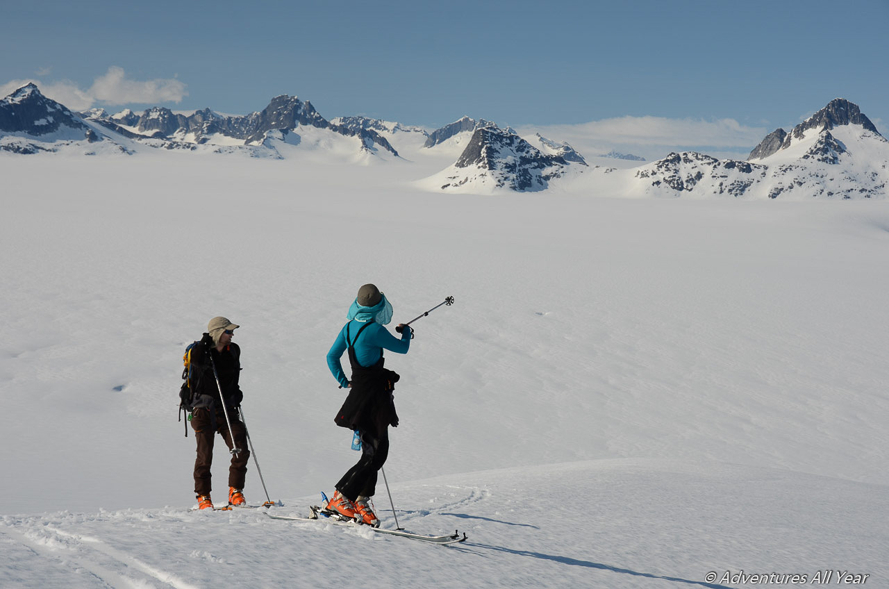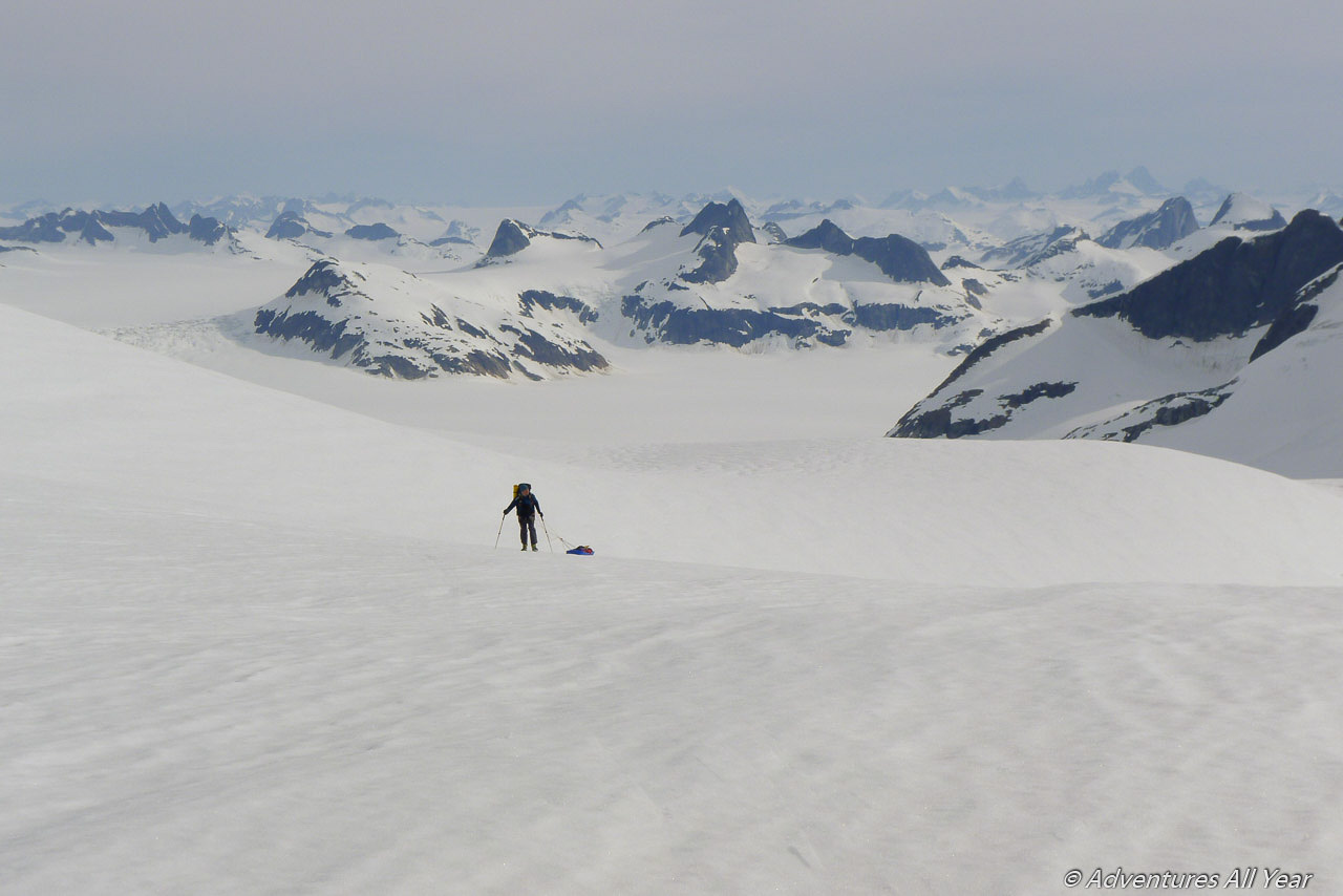 The area, although without any great terrain difficulties, is very remote and you need to have experience with winter camping, glacier travel and navigation by GPS. It is not completely out of anyone’s league though and can be done both in summer or winter. In fact, there is an organization called Juneau Icefield Research Program (JIRP) that takes applicants on a 2-week stint hiking onto the icefield, staying at glaciology huts and helping with the glacier observations and measurements. In winter, the travel mode is only on skis.