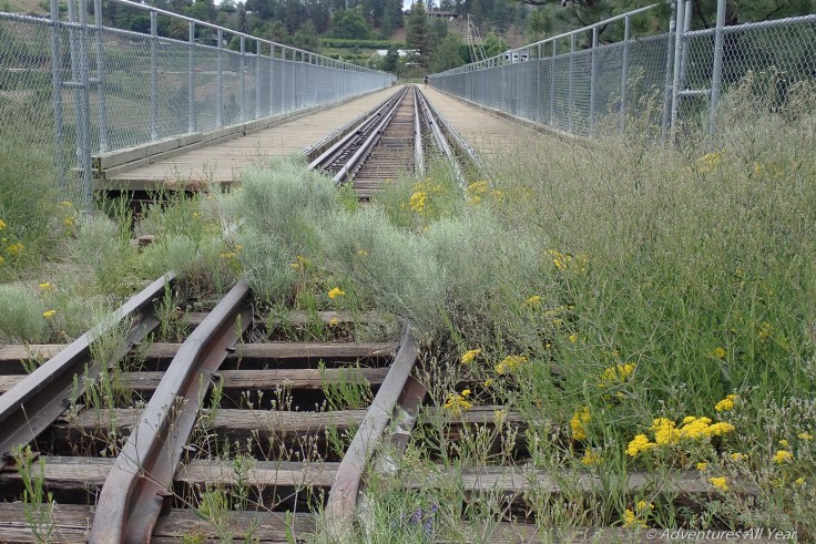 Spanned by a new steel trestle bridge (the original was made of wood) it brings you to a Canyon railway station in West Summerland – a cute little train stop for a tourist steam train – the last vestige of a once proud railway.