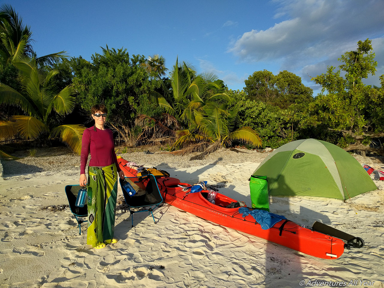 That night we camp on Lingnumvitae Cay. It’s a peculiar little island with attractive flora of thorny bushes and prickly plants that likely don’t see much rain. We are treated to the usual white sand and turquoise waters. Did I tell you that on all these perfect camping beaches we were ALONE?