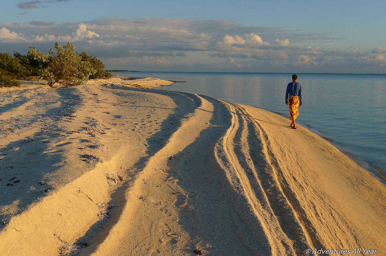Walking the extensive sandbanks N of Long Cay at low tide.