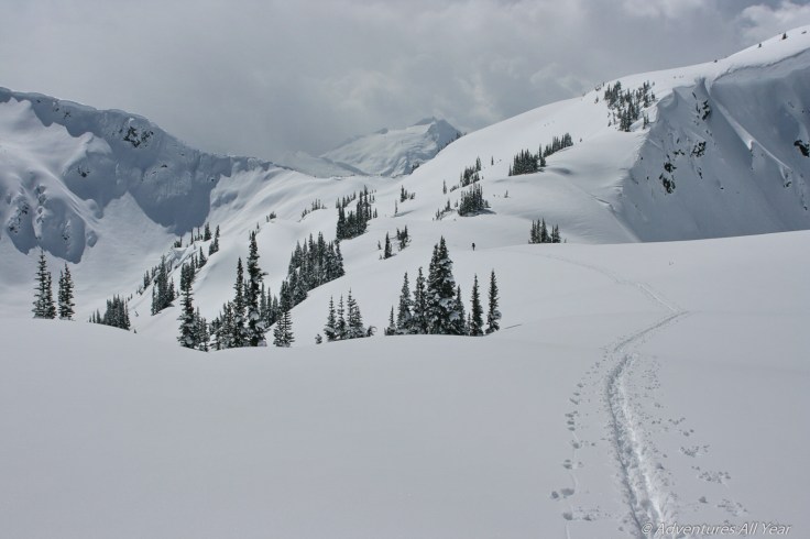 McBride Traverse is a ski route that spans the length of the vast Garibaldi park. The entire route can clock in somewhere around 100km and ten years ago used to be a major undertaking. However, the young generation of backcountry skiers is pushing the envelope of what’s considered “recreational” and I am seeing parties doing this traverse in substantially less time. Strong navigational skills recommended.