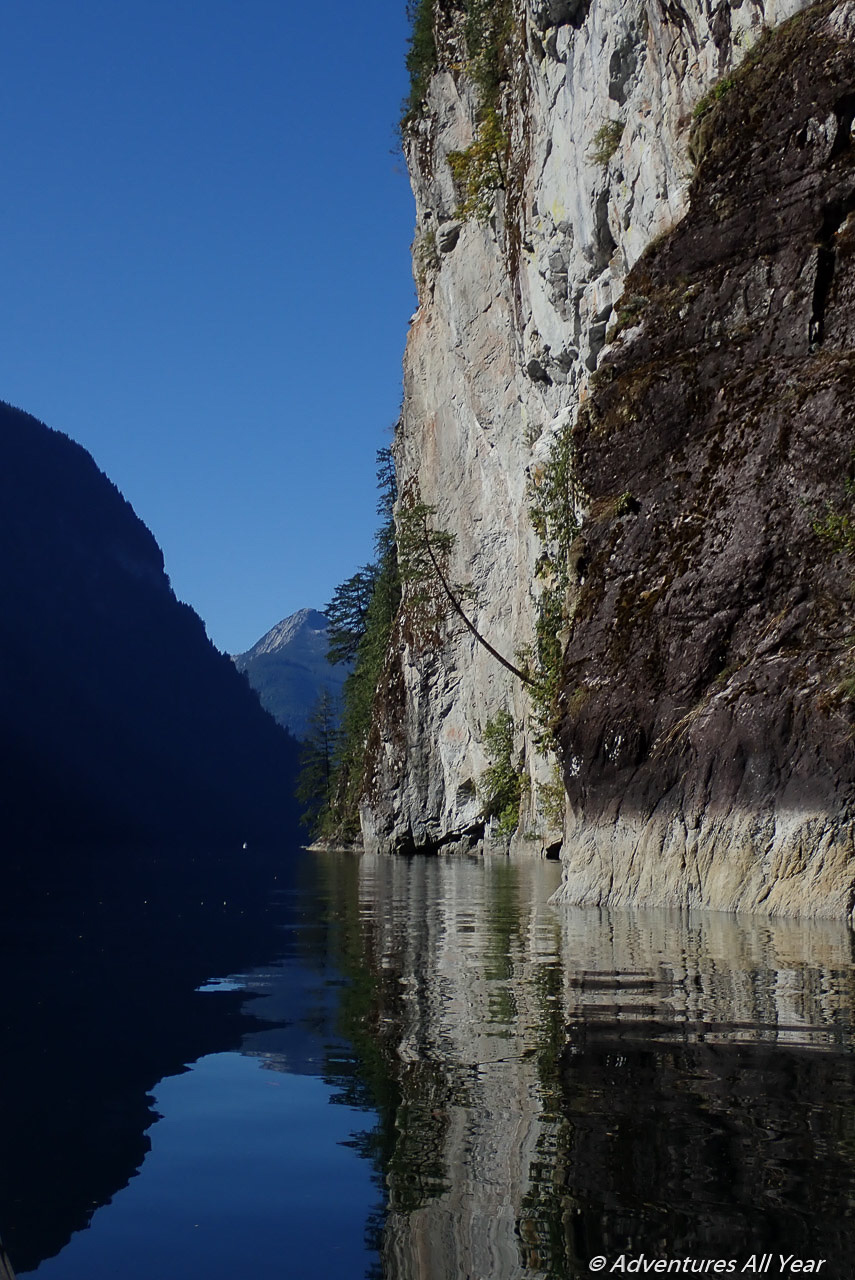 Once through the Malibu Rapids we have reached Princess Louisa Inlet. The granite walls around you close in and all you see is just verticals and the emerald blue waters of the inlet. The summits of those peaks, those you can’t see but through the entire inlet the gurgle of Chatterbox Falls reverberates. They are iconic of Princess Louisa Inlet and I feel a great deal of accomplishment having made it here.