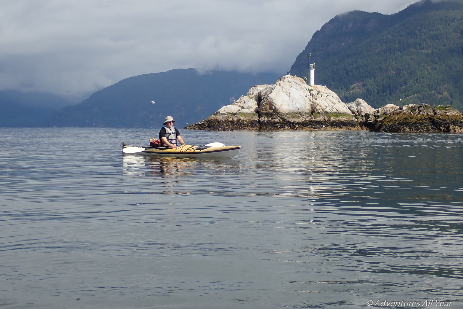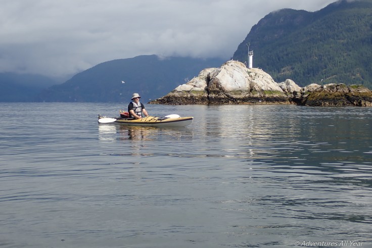 The usual kayaking precautions apply: Howe Sound is subject to some strong northerly outflow winds and the southern portion around Bowen and Pasley Islands gets affected by winds blowing in the Straight of Georgia. So if you are new to kayaking then go in a group. But above all – check the weather forecast on each day of your expedition and paddle when winds are less than 10 knots (from experience, this is wind speed that will not frazzle novices). The paddling distances are not huge so it’s always better to wait it out.