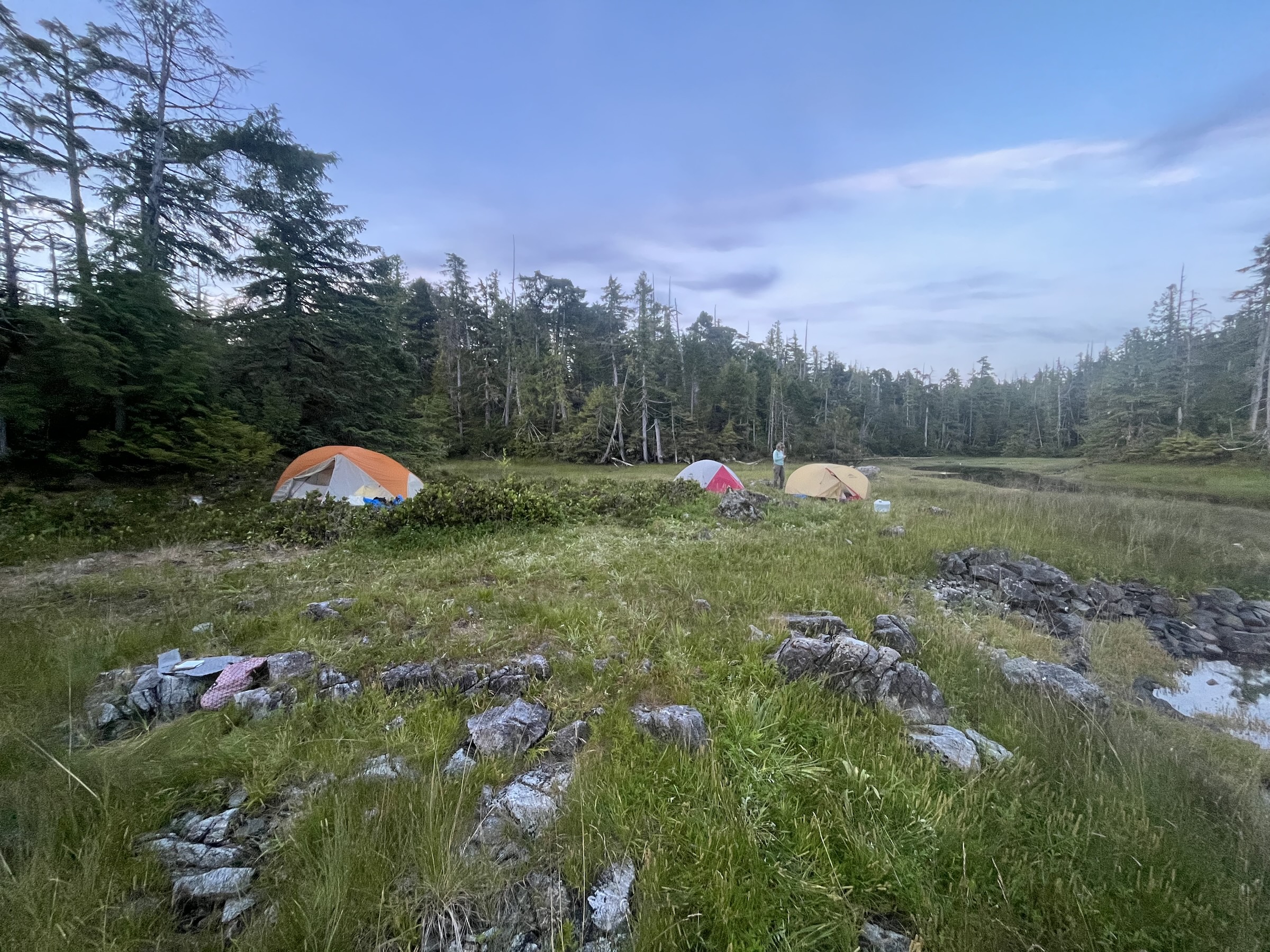 I knew of a spot tucked behind navigation light at Serpent Point. I wasn’t sure what we were going to find there but it was getting late in the day and we needed to get out and warmed up. It turned out to be a great spot to take us in for the night. However, I have never seen so much bear poop in one place in my life. Needless to say, all six of us spent spent the majority of the evening designing and implementing impeccable bear hangs 🙂