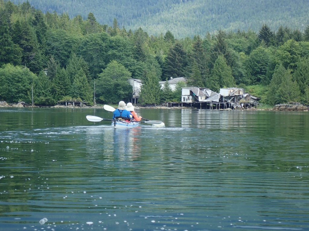 Good paddling day. We followed Joassa Passage which is quite narrow but makes for a good sightseeing. Stopped at Quinoot Point for lunch, a good campsite for a large group. The point is home to a cabin that is now quite dilapidated but was used by the local First Nation.
